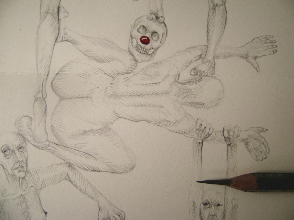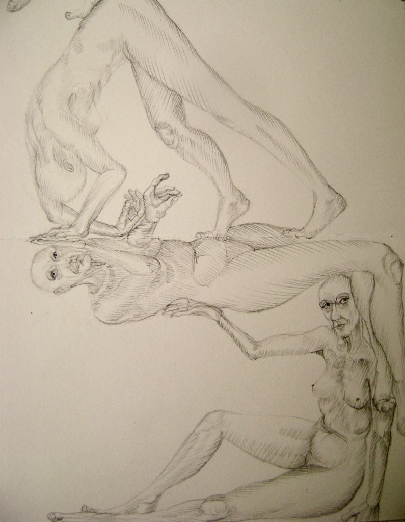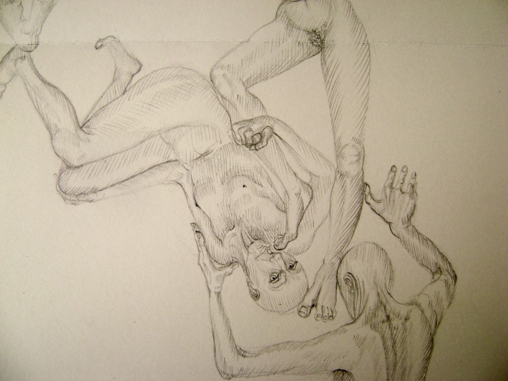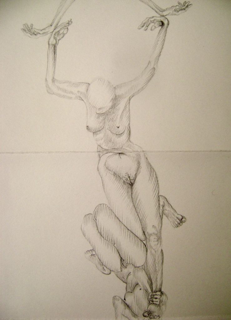 Le titre seul indique la trame du dessin . Dans cette voie, les figures se déploient et découlent les unes des autres, de leurs positions imbriquées. Ainsi en va-t-il des corps dans le quotidien le plus banal. Nous sommes dans une chorégraphie, un degré zéro de chorégraphie mais une chorégraphie sans fin.